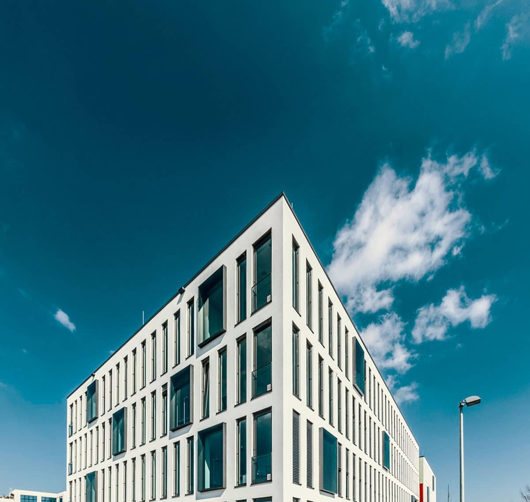 Unsere Ende 2013 fertiggestellte erste Büroimmobilie im Rheinpark in Monheim, direkt am Rhein gelegen, schließt sich mit seiner kreativen Architektur dem gehobenen Erscheinungsbild des Gewerbeparks an und vermittelt einen hohen Anspruch an Qualität, Detaillierung und Gestaltung. Auf Energieeffizienz und Nachhaltigkeit wurde bei der Planung ein besonderes Augenmerk gelegt.